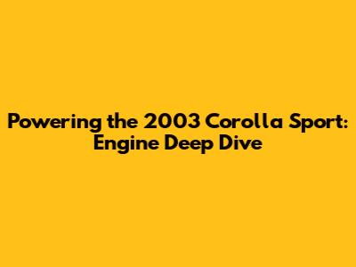 Powering The 2003 Corolla Sport: Engine Deep Dive