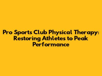 Pro Sports Club Physical Therapy: Getting Athletes Back In The Game