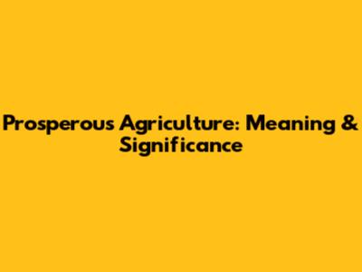 Prosperous Agriculture: Meaning & Significance