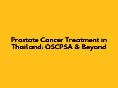 Prostate Cancer Treatment In Thailand: OSCPSA & Beyond
