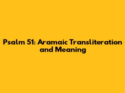 Psalm 51: Aramaic Transliteration And Meaning