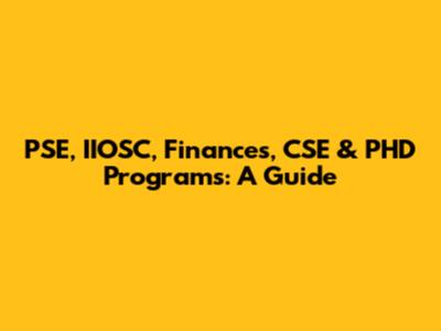 PSE, IIOSC, Finances, CSE & PHD Programs: A Guide