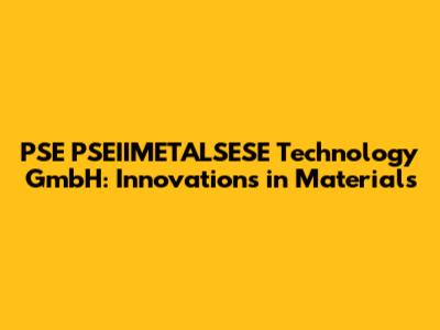 PSE PSEIIMETALSESE Technology GmbH: Innovations In Materials