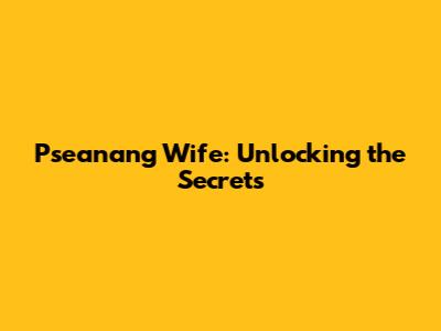 Pseanang Wife: Unlocking The Secrets
