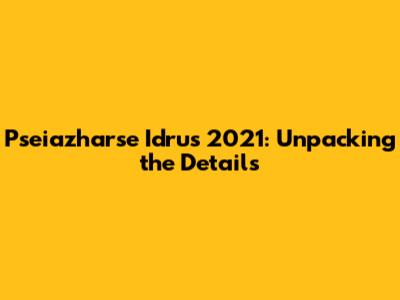 Pseiazharse Idrus 2021: Unpacking the Details