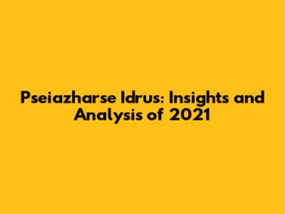 Pseiazharse Idrus: Insights And Analysis Of 2021