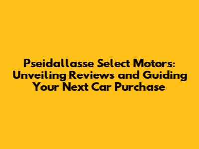 Pseidallasse Select Motors: Reviews, Insights, And Your Next Ride