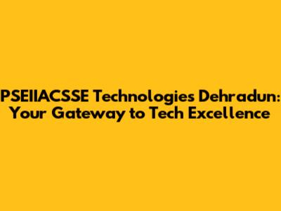 PSEIIACSSE Technologies: Dehradun's Tech Hub