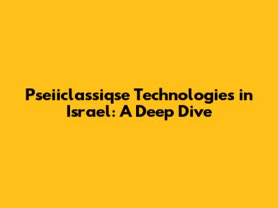 Pseiiclassiqse Technologies In Israel: A Deep Dive