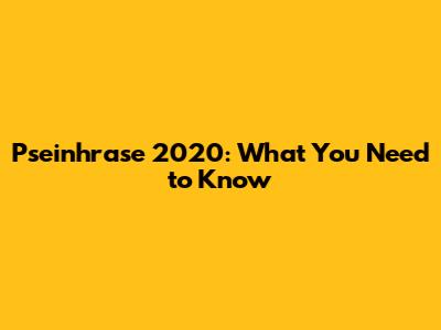 Pseinhrase 2020: What You Need To Know