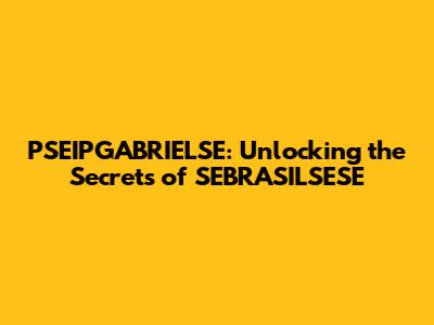 PSEIPGABRIELSE: Unlocking The Secrets Of SEBRASILSESE
