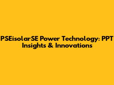 PSEisolarSE Power Tech: PPT Insights & Innovations
