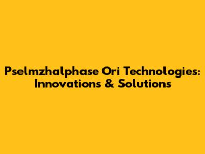 Pselmzhalphase Ori Technologies: Innovations & Solutions