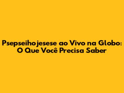 Psepseihojesese Ao Vivo Na Globo: O Que Você Precisa Saber