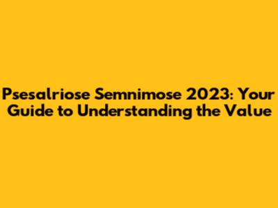 Psesalriose Semnimose 2023: What You Need To Know
