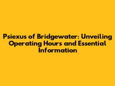 So, the big question: what are the Psiexus of Bridgewater hours? Understanding their schedule is super important if you're planning a visit. The operating hours can change, so it's always a good idea to double-check before you head over. I mean, nobody wants to show up and find out they’re closed, right?