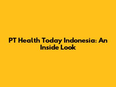 Why PT Health Today Indonesia Matters