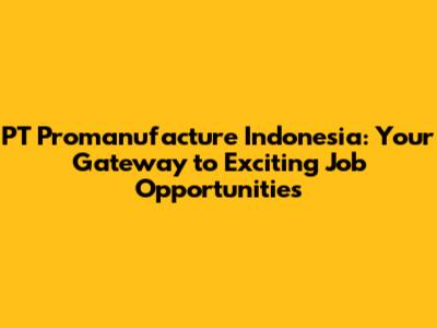 PT Promanufacture Indonesia: Your Gateway To Exciting Job Opportunities