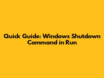 Quick Guide: Windows Shutdown Command In Run