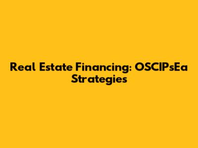 Real Estate Financing: OSCIPsEa Strategies