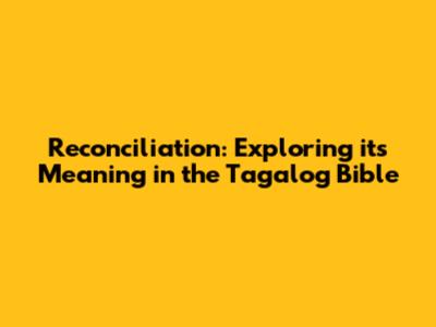 Reconciliation: Exploring Its Meaning In The Tagalog Bible