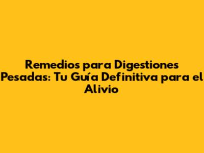 Remedios Para Digestiones Pesadas: Guía Completa Y Efectiva