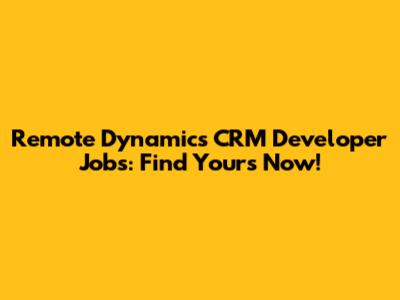 Remote Dynamics CRM Developer Jobs: Find Yours Now!