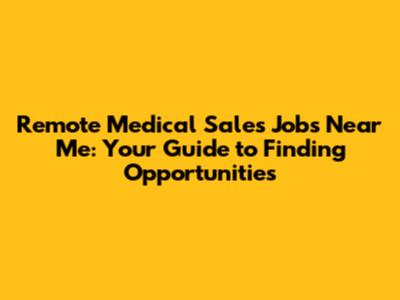 Remote Medical Sales Jobs: Find Opportunities Near You