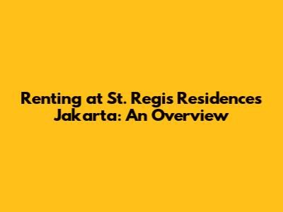 Rent St. Regis Residences Jakarta: Your Luxury Guide