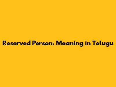 Reserved Person: Meaning In Telugu
