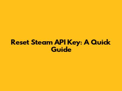 Reset Steam API Key: A Quick Guide