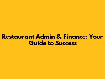 Restaurant Admin & Finance: Your Guide To Success
