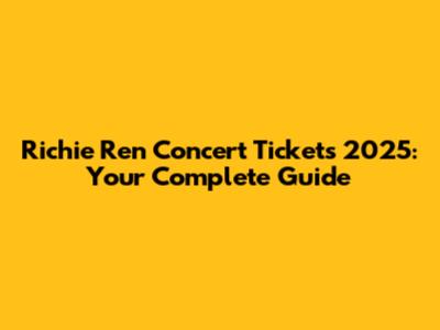 Richie Ren Concert Tickets 2025: All You Need To Know