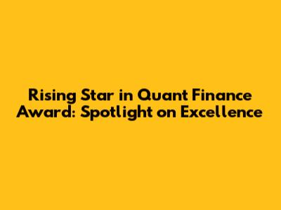 Rising Star In Quant Finance Award: Spotlight On Excellence