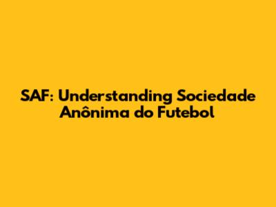 Hey guys! Ever heard of SAF in the context of Brazilian football? It stands for Sociedade An么nima do Futebol, which translates to Football Anonymous Company. It's a new business model shaking up how football clubs in Brazil are managed and financed. Let's dive into what it's all about, why it's a big deal, and what it means for the future of Brazilian futebol!