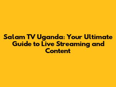 How to Watch Salam TV Uganda Live Today