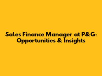 Sales Finance Manager At P&G: Opportunities & Insights