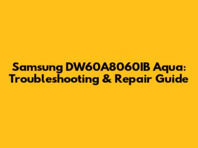 Samsung DW60A8060IB Aqua: Troubleshooting & Repair Guide