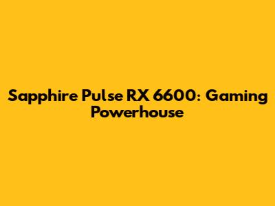 Sapphire Pulse RX 6600: Gaming Powerhouse