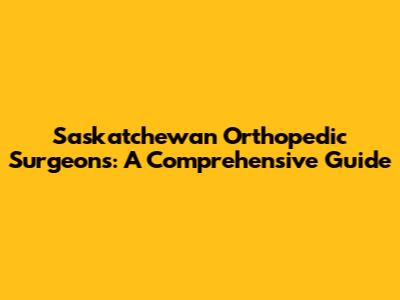 Saskatchewan Orthopedic Surgeons: A Comprehensive Guide