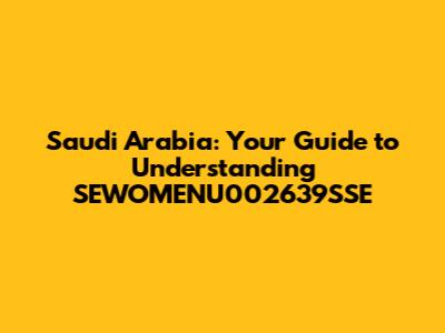 Saudi Arabia: Your Guide To Understanding SEWOMENU002639SSE