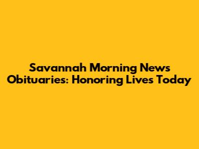 Savannah Morning News Obituaries: Honoring Lives Today