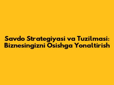Savdo Strategiyasi Va Tuzilmasi: Biznesingizni Qanday O'sishga Olib Borish