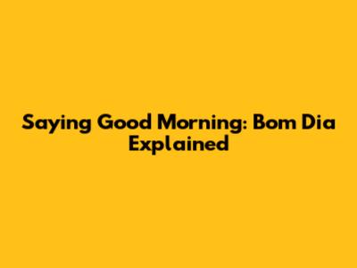 Saying Good Morning: 'Bom Dia' Explained