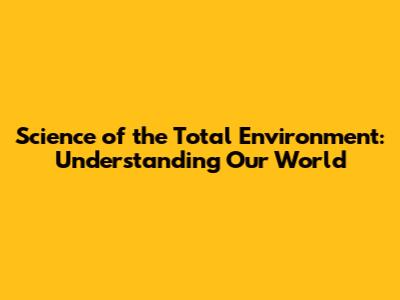 Science Of The Total Environment: Understanding Our World