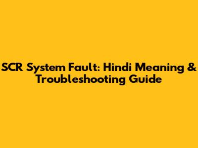 SCR System Fault: Hindi Meaning & Troubleshooting Guide