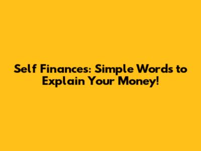 Self Finances: Simple Words To Explain Your Money!