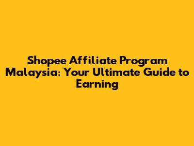 Shopee Affiliate Program Malaysia Guide