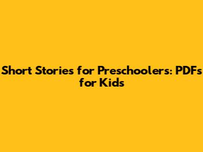 Short Stories For Preschoolers: PDFs For Kids