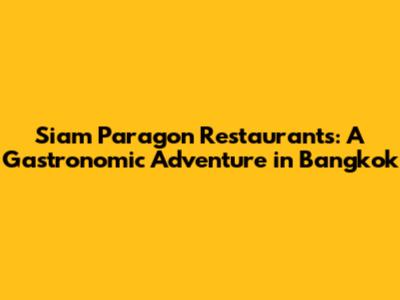 Siam Paragon Restaurants: Your Ultimate Dining Guide